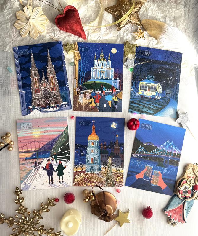 Цей набір листівок із серії «На тебе чекає» від мого бренду Chernik_art. Шість моїх авторських ілюстрацій у вигляді листівок 10/15 см. Надруковані на фактурному картоні хорошої якості. Зимовий Київ в атмосферних ілюстраціях підніме настрій Вам і Вашим близьким. Набор в обкладинці з крейдованого паперу і в пакетику ❤️
