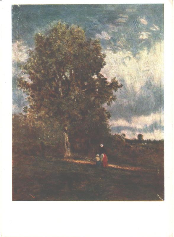 Открытка констан тройон "пейзаж с деревом" государственный эрмитаж изд. изогиз ссср