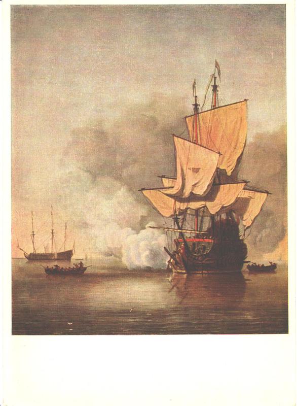 Німецька листівка willem van velde ндр ddr veb verlag велде молодший гарматний залп