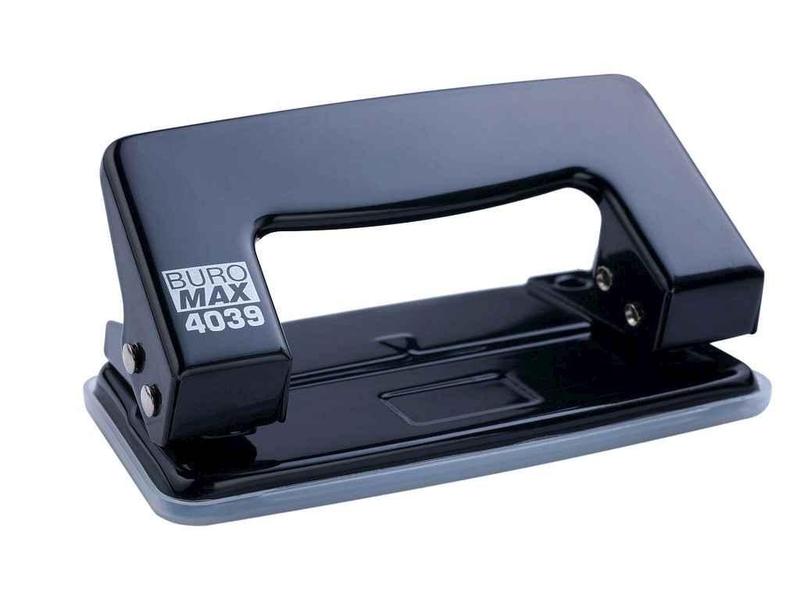 Діркопробивач металевий, JOBMAX, до 10 арк., 100х55х50 мм, чорний BM.4039-01 ТМ BUROMAX Корпус діркопробивача BUROMAX виготовлений з металу. Підошва оздоблена пластиковим контейнером, який знімається, для збору відходів висічки. Металевий діркопробивач BUROMAX легко і швидко пробє заявлену кількість аркушів. Матеріал: метал Пробивна потужність: 10 аркушів 80 г/м2 Діаметр пробивного отвору: 5,5 мм Відстань між пробивними отворами: 80 мм Розміри діркопробивача: 100х55х50мм Колір: чорний Діркопробивачі BUROMAX - це якість і надійність!