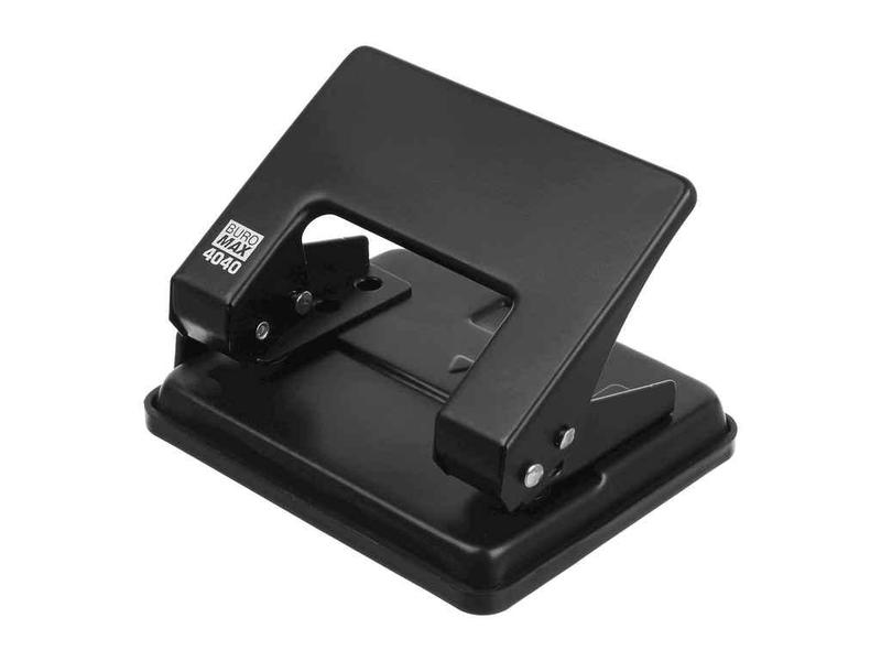 Металевий діркопробивач серії JOBMAX від BUROMAX - незамінний аксесуар при роботі з документами, легко та швидко пробє заявлену кількість аркушів паперу. Пробивна потужність: до 20 аркушів паперу щільністю 80 г/м² Металева підошва та механізм, металевий важіль Знімний пластиковий контейнер для збору відходів висікання Діаметр отвору: 5,5 мм Міжцентрова відстань: 80 мм Висувна лінійка з форматною шкалою Колір чорний Картонна упаковка Діркопробивачі BUROMAX - це зручність та надійність!