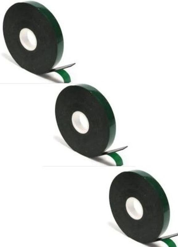 Двосторонній скотч на спіненій основі чорний із зеленим лайнером 12 мм х 2,5 м, 1 мм, ящик...