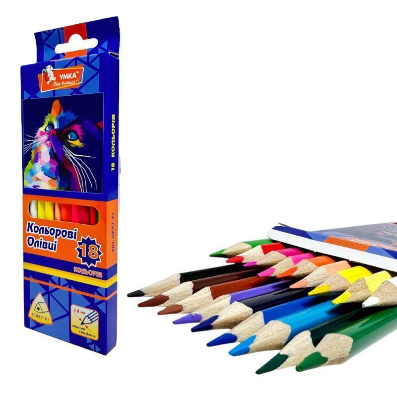Набір кольорових олівців УМКА "Фауна". 18 яскравих кольорів. Міцний грифель, трикутна форма. Упаковка - коробка, 18 шт. Ціна за упаковку.