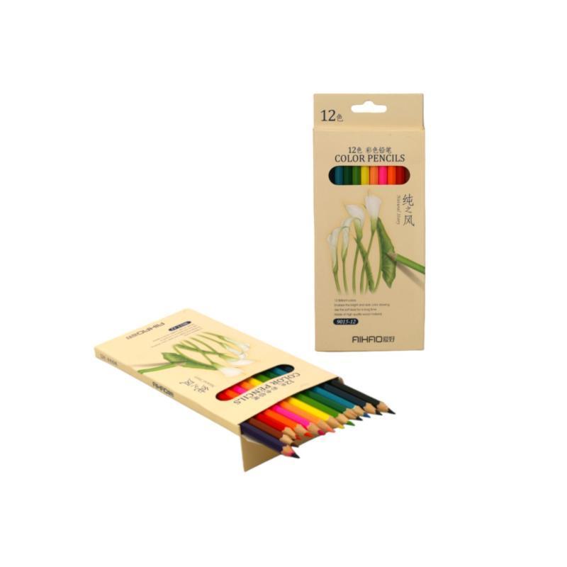 Набір кольорових олівців AIHAO. 12 яскравих кольорів. Упаковка - коробка, 12 шт. Ціна за упаковку.