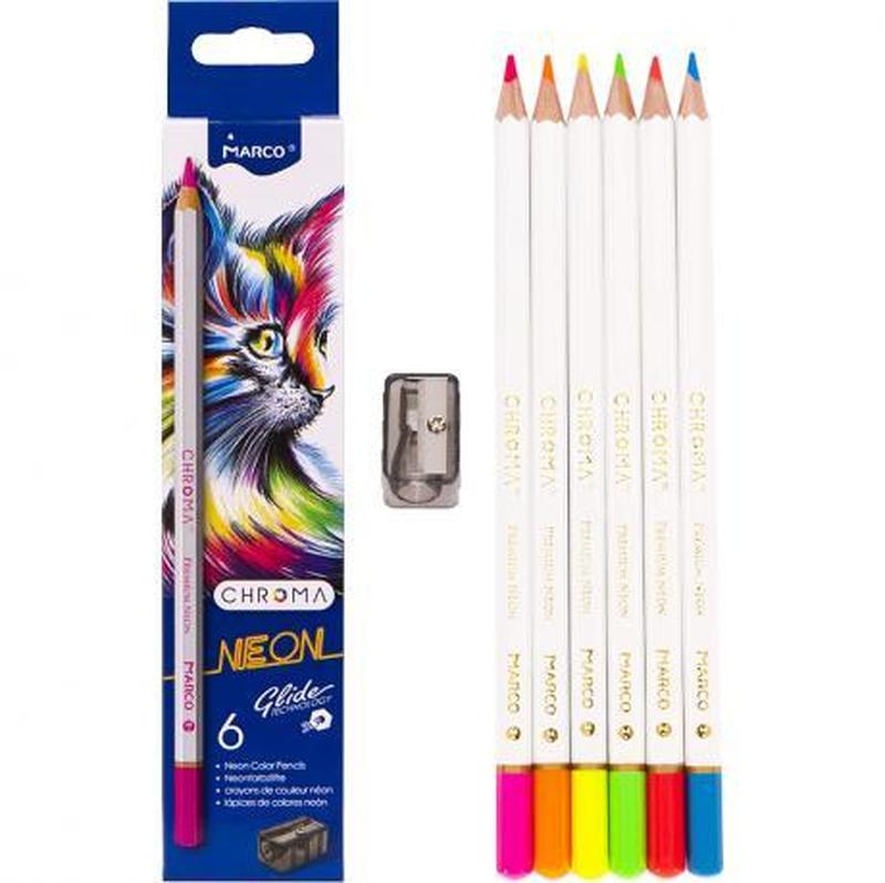 Кольорові олівці 6 кольорів + точилка неон marco chroma neon 1032-6cb knz