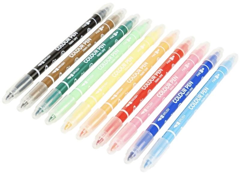 Набір дитячих двосторонніх маркерів 10 шт 10 різних кольорів Для малювання та розфарбовування Маркери дозволяють малювати двома стилями завдяки наконечнику пензлика і тонкому кінчику