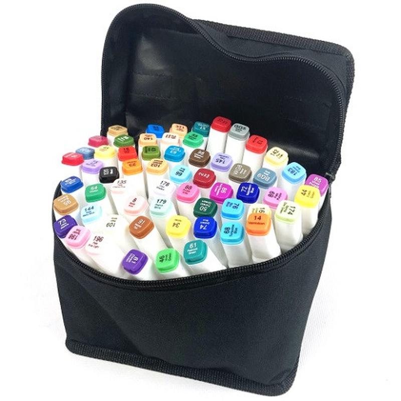 Маркери для малювання та скетчів у тканинному футлярі. Двосторонні, на спиртовій основі. У наборі 60 шт. Основна палітра, оптимально підібрана для малювання всіх стилів. Скетч — маркери є одними з найпопулярніших спиртових, двосторонніх маркерів. У наборі з 60 маркерів дизайнер знайде натхнення для реалізації свого творчого потенціалу. Маркер має другий пера (перо "долото" та перо маркер). Колір маркера закарбовано на ковпачку, там же і номер маркера. Це неабияк спрощує роботу під час вибору необхідного кольору. Корпус пластиковий, гладкий. Ковпачки щільно закриваються. Кожен маркер має два наконечники різної форми для різного типу робіт. Загострений наконечник для тонких ліній та окреслень. Плоский наконечник зі скошеним краєм для широких штрихів. Довжина маркера 17 см.
