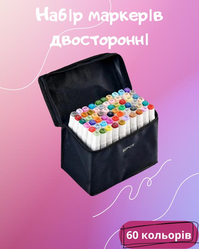 Набір маркерів двосторонні спиртові 60 шт touch smooth для скетчінгу+підставка для маркері...