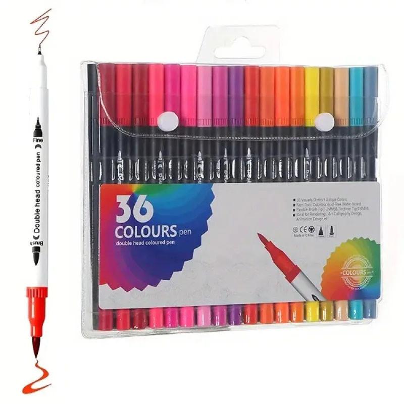 Професійний набір 36 шт двосторонніх маркерів лінер+пензель з м'якою головкою на водн...