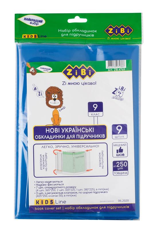 Набір обкладинок для книг zibi kids line 9 клас, 250мкм, 9шт / упак., zb.4769