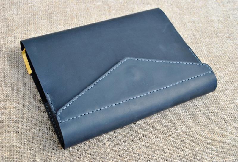 Шкіряна обкладинка для щоденника формат а6 в темно-синьому кольорі b17-600