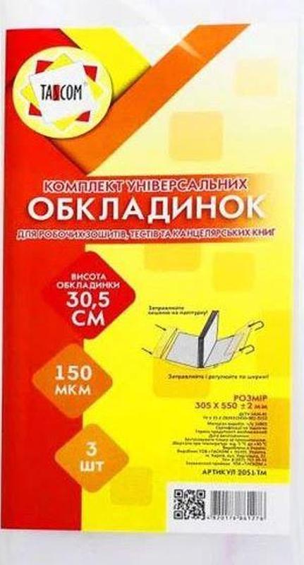 Комплект універсальних обкладинок для робочих зошитів, тестів, канцелярських книг, 3 шт, щільність 150 мкм, з липкою стрічкою 2051-TM Tascom.