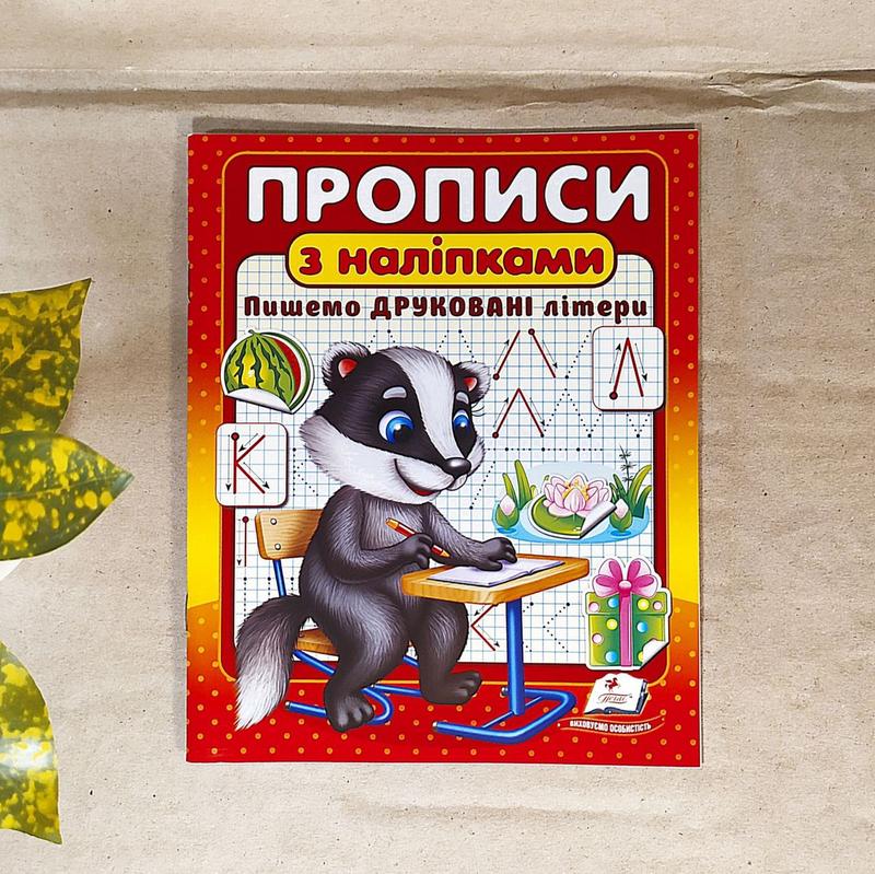 Детские прописи с наклейками "напечатайте печатные буквы"