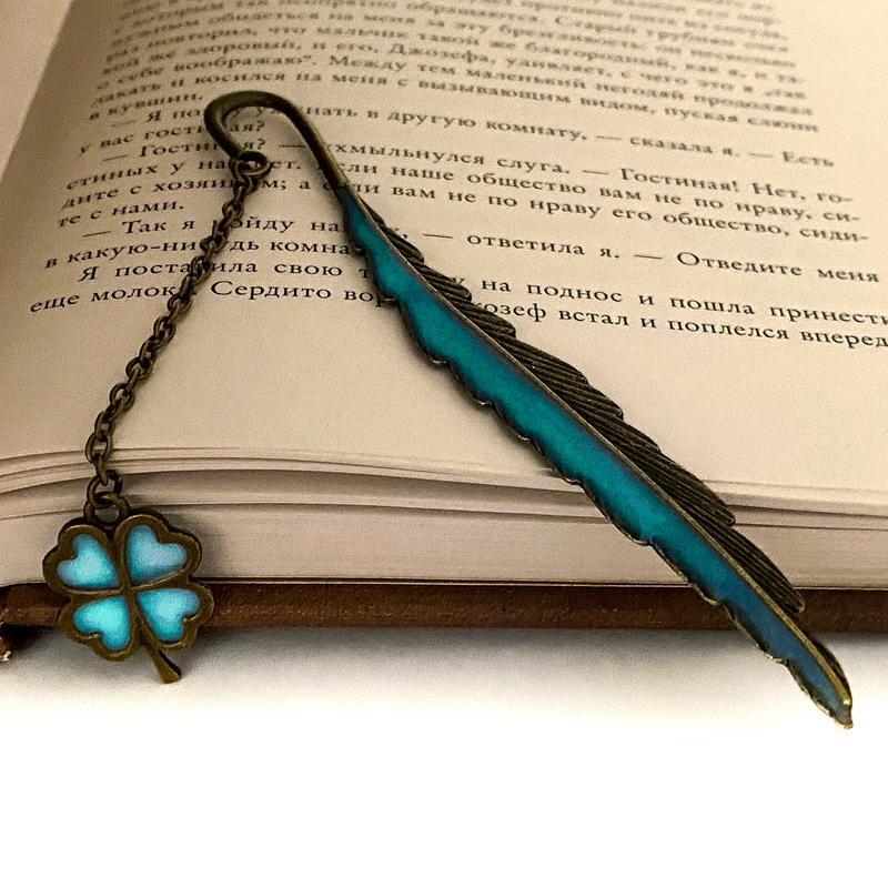 📚 Ексклюзивна закладка для книг, що світиться – «Чотирилистник». 🎑 Унікальний аксесуар для книголюбів, який не лише прикрасить сторінки улюблених історій, а й додасть читанню нотку чарівності. Закладка світиться у темряві, створюючи затишну й магічну атмосферу на книжковій полиці. 🌟 Чотирилистник з давніх-давен є символом удачі, надії, віри та любові. Такий амулет обов’язково подарує натхнення кожному читачеві. Матеріал: метал. Розміри: Повний — 19 см. Закладка — 12 см. Ланцюжок — 7 см. Ідеальна як для себе коханої, так і на подарунок дорогій людині. 💵 Ціна — 159 грн.