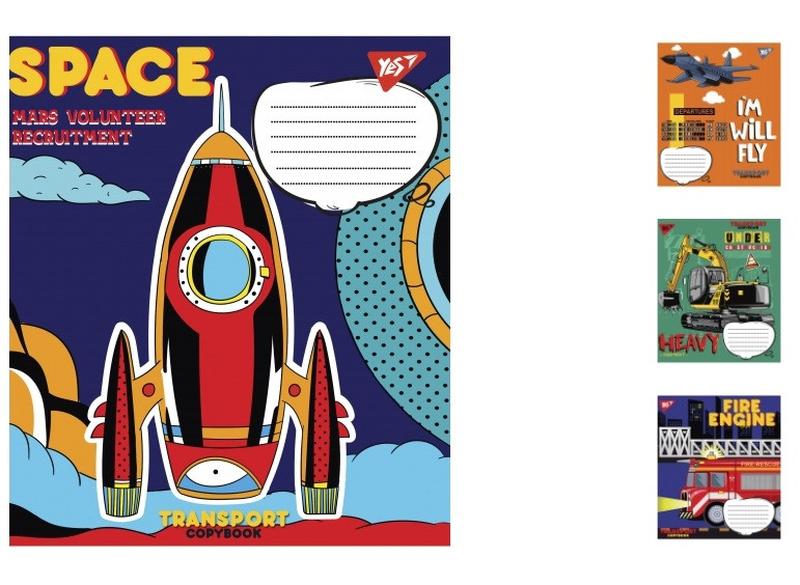 Зошит учнівський А5/12 лінія 1В Transport, 25шт/упак. Увага. Виробник залишає за собою право змінювати комплектацію, колірну гаму та характеристики товару без попереднього повідомлення. .