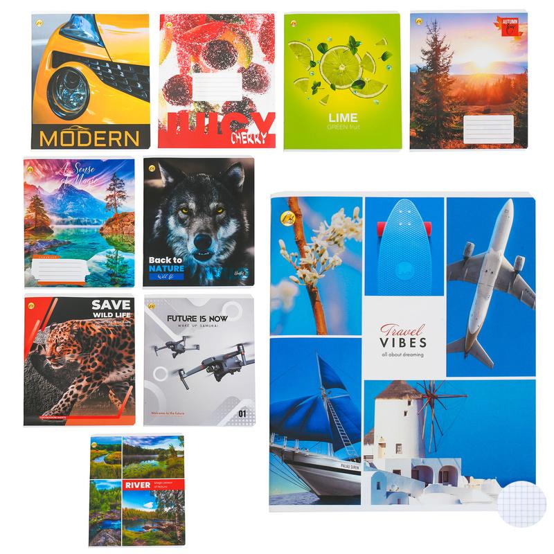 Зошит "Люкс", шкільний, асортимент дизайнів. 96 аркушів, в клітинку Упаковка - плівка, 10 шт. Ціна за упаковку.