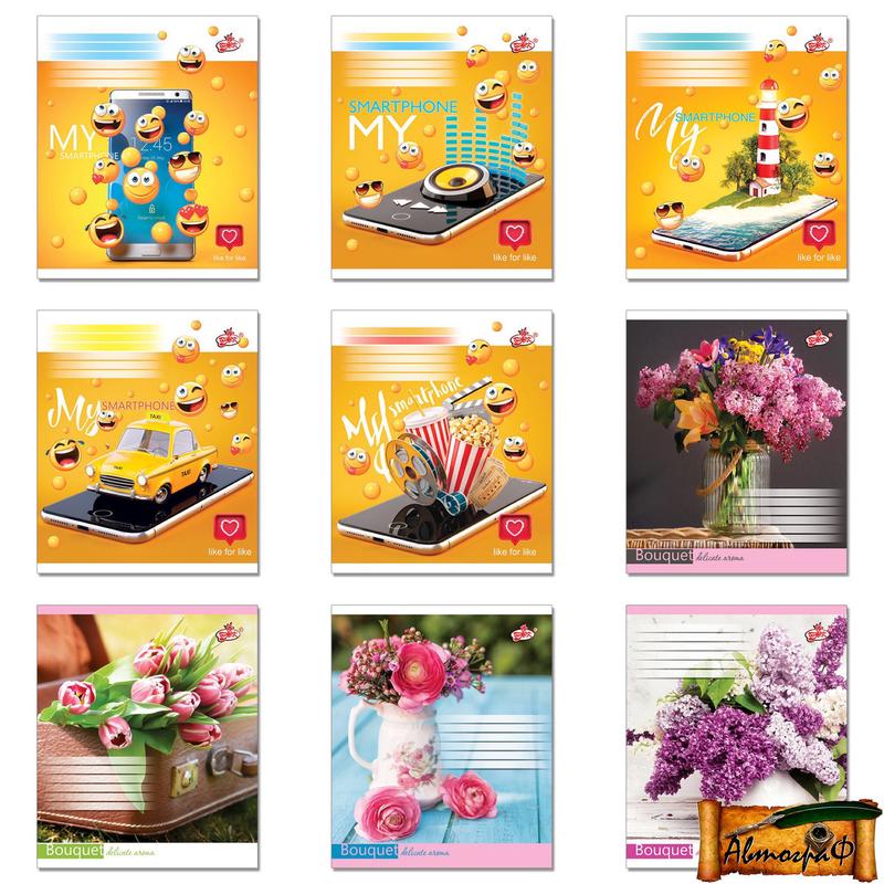 Тетрадь 24 листа линия цветы, пирожные, напитки, велосипеды и т.д. (1 сентября, тетрада, б...