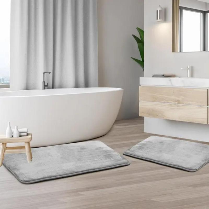 Набір килимків у ванну — 2 шт. 80*50 см і 60*40 см. сірий, стильний, антиковзний, водопогл...
