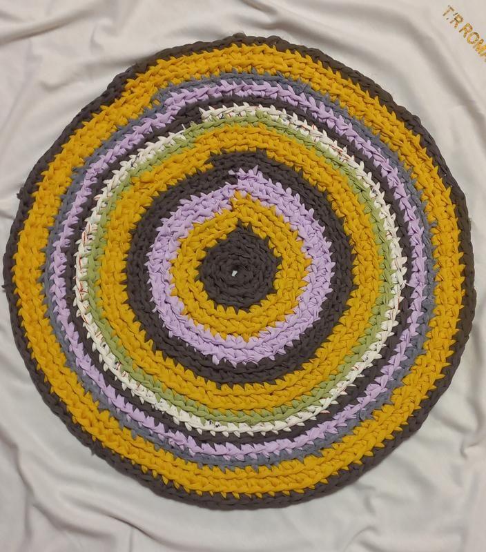 Килимок ручної роботи, діаметр 56 см Додаткові характеристики: Колір: Різні кольори Тематика декору, малюнка: Без декору Форма килима: Структурний Призначення килима/доріжки: Універсальне Тип: Килимова доріжка