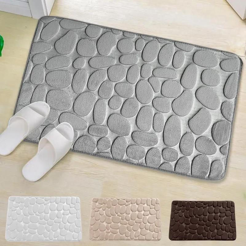 Стильний килимок для ванної кімнати водопоглинальний з антиковзним покриттям. Стильний, м'який, коротко-ворсовий, об'ємний відбиток камінців. Має протиковзне покриття, чудово поглинає вологу, легкий у використанні, швидко та просто переться і сохне. Антиковзне покриття зробить щоденне використання всіма членами сім'ї максимально безпечним. Цей килимок зробить Вашу ванну затишною, а також гарантує безпека та комфорт під час виходу з ванній, що особливо важливо, якщо в домі є діти. Призначення: у ванну в туалет у дитячу в кухню Характеристика: Матеріал: Коротке-ворсове м'яке покриття, водопоглинальна основа, антиковзне покриття ПХВ. Колір: Сірий Розмір килимків: 60*40 см