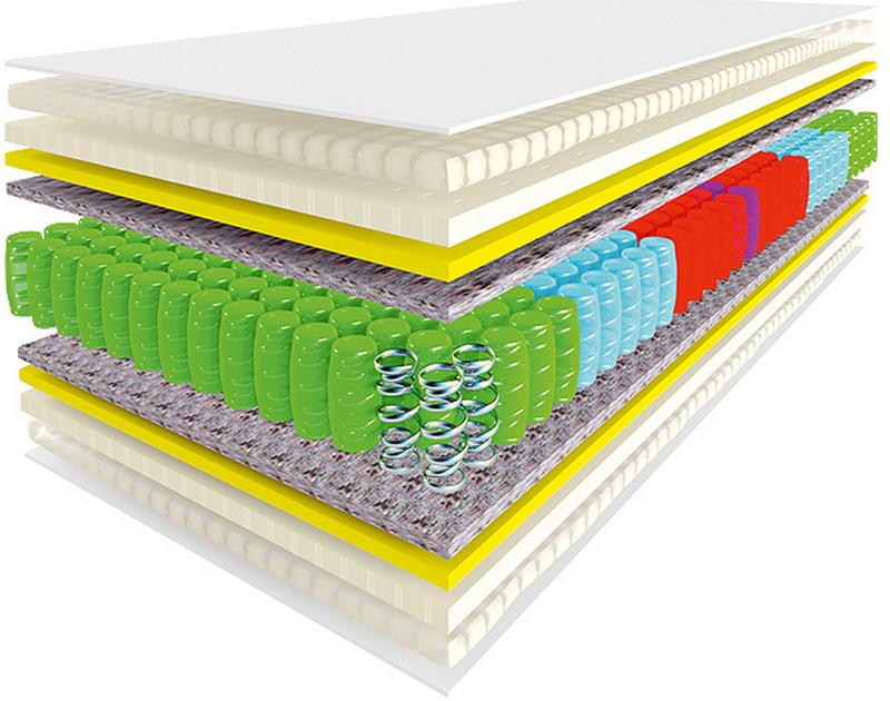 Опис товару: Матрац River Matroluxe володіє чудовими здібностями - дарувати відчуття невагомості і легкості, можливість набратися нових сил під час відпочинку, щоб почати день з гарним настроєм і відмінним самопочуттям. Модель складається з декількох шарів, робота яких спрямована головним чином на підтримку кожної ділянки тіла в положенні, яке дозволить повністю розслабитися м'яка язам. Склад матраца: - Чохол - Extra Jacquard глибокої прошивки - Cotton Flax - Biolatex - Oxygen Foam - Thermofiber - Пружинний блок Smart Spring Multizone - Єврокаркас - Thermofiber - Oxigen Foam - Biolatex - WoolFlax - Тип: Двосторонній з ефектом Зима / Літо - Висота: 27 см - Жорсткість: 3,5 / 3,5 - Максимальні навантаження: 180 кг Основним використовується куля з блоком Smart Spring Multizone. Дана система розроблялася спеціально і сьогодні може враховувати фізіологічні особливості будови людського тіла. Окремі пружини здатні створювати 7 різних зон жорсткості і рівномірно поширюють всю вагу тіла по периметру. Thermo Fiber - матеріал природного походження, який виготовлений на основі волокон овечої вовни. Володіючи м'яким якістю і легкістю структури, матеріал відмінно зберігає свою форму і захищає м'які які шарі від впливів блоку пружин, значно продовжуючи при цьому термін служби матраца. Wool Flax - наповнення, в основі якого натуральна овеча вовна. Така матерія чудово доповнює Thermo Fiber своїми теплоізоляційними можливостями, відмінно пропускає повітря, не затримуючи і виводячи назовні зайву вологу. Extra Jacquard - матерія, створена на основі лляних і бавовняних волокон. Саме такою тканиною покривається матрац, він ідеальний для чохла, глибока прошивка надає об'єм ємності зовнішнім поглядом, а особливості будови волокон допомагають підтримувати оптимальний мікроклімат усередині матраца. Oxigen Foam представлено насиченою киснем піною, яка повністю натуральний, не викликає алергії, забезпечує вільний повітряний потік всередині матраца і зберігає пружність і оптимальну жорсткість. Єврокаркас з міцного пінополіуретану проходити по всьому периметру, надійно захищаючи від деформацій поверхні. Cotton Flax виробляється на основі стовідсоткового бавовняного волокна і розташовується з літнього боку матраца для підтримки оптимального балансу температури в жаркий період. Bio Latex проводитися в процесі спінювання соку деревини гевеї, набуваючи пористу структуру, відмінно пропускає повітря і вбирає вологу. Особлива технологія обробки робить наповнювач стійким до тривалого впливу високого тиску і здатним після цього відтворювати свою первинну форму. Купити матрац River Matroluxe - значити зробити довголітній внесок у своє здоров'я, активну продуктивну життя, яка можлива тільки при можливості добре відпочити на розкішному спальному місці .