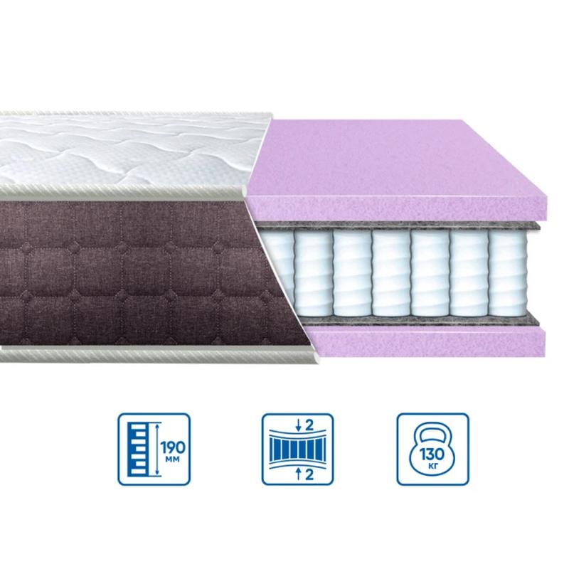 ПЕРЕВАГИ МАТРАЦА BRAVE "SPRING FOAM" ТРИКОТАЖ: Дана модель підійде тим, хто шукає якісний бюджетний матрац з незалежними пружинами. Внутрішнє наповнення складається з АРМ блоку «Кишенькова пружина», термотрему та пінопласту «FLEXI» європейського походження. Незалежні пружини забезпечують точкову підтримку організму і добре підтримують хребет. Матрац має масу переваг: - ортопедичний і анатомічний ефект - екологічно чистий - симетрична жорсткість - циркуляція повітря - резинки-фіксатори по кутах - гарантія 18 місяців Використовуються матеріали у матраці BRAVE "SPRING FOAM" ТРИКОТАЖ: Для виготовлення виробу використані наступні наповнювачі і тканини: - Трикотаж - один з кращих видів тканин для матраців. Трикотажне полотно - це комфорт, м'якість, еластичність і практичність. Висока щільність і міцність трикотажу не заважає йому залишатися повітряно-легким. - Піна Flexi - нетоксичний, довговічний та гіпоалергенний пористий матеріал. Завдяки структурним особливостям піна Flexi сприяє правильному розподілу тиску на різні ділянки тіла, знімає напругу з судин та покращує кровообіг під час сну. Високий рівень щільності матеріалу покращує ортопедичні властивості матраца. Піна Flexi в матрацах, має комфортну м'якість, еластичність і водночас гарну пружність. - Термовойлок являє собою нетканий матеріал, що складається з натуральних і синтетичних волокон. - Pocket Spring - пружинний блок особливої конструкції, що складається з безлічі металевих пружин циліндричної форми, упакованих в окремий чохол з міцної тканини. - Синтефлекс – матеріал, що за конструкцією знаходиться під тканиною чохла, призначений для безперешкодної циркуляції повітря. Завдяки об’ємній структурі, створює повітряну подушку між тілом людини і наповнювачами, підвищуючи комфорт людини, що спить. - Спанбонд – матеріал, що прикріплюється до чохла з внутрішнього боку, для підвищення експлуатаційних властивостей конструкції чохла. Регламентована висота матраца - 19 см. Рекомендоване навантаження моделі - до 130 кг. на односпальне місце. Жорсткість середня. Гарантія - 18 міс.