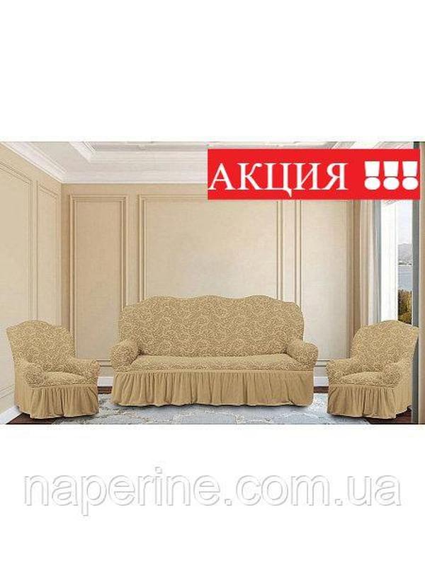 Чохол натяжний на диван і два крісла з букльованого жаккарда milano бежевий