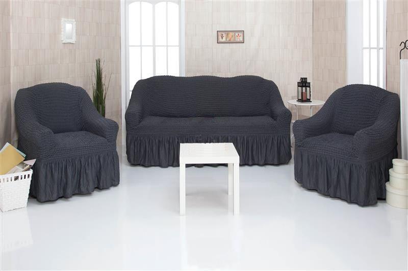 Чехлы натяжные на диван 3-х местный и два кресла venera 01-229 (универсальные) темно-серый...