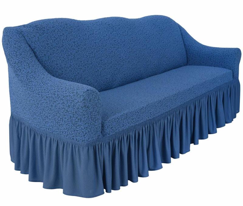Чохол натяжний на диван і 2 крісла з буклированного жаккарда milano блакитний новинка!