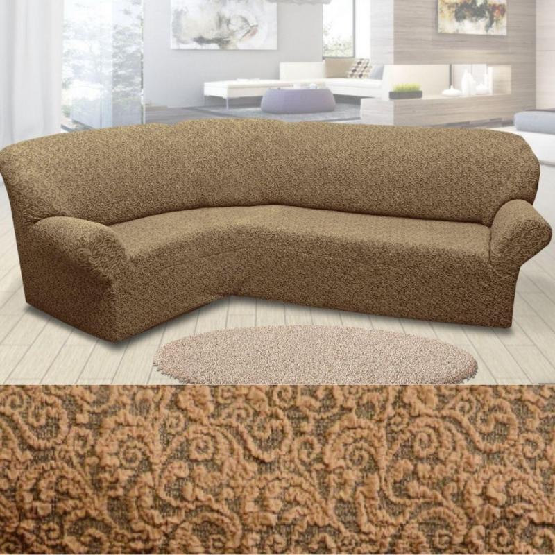Чехлы на угловые диваны жаккардовый без оборки турция песочный