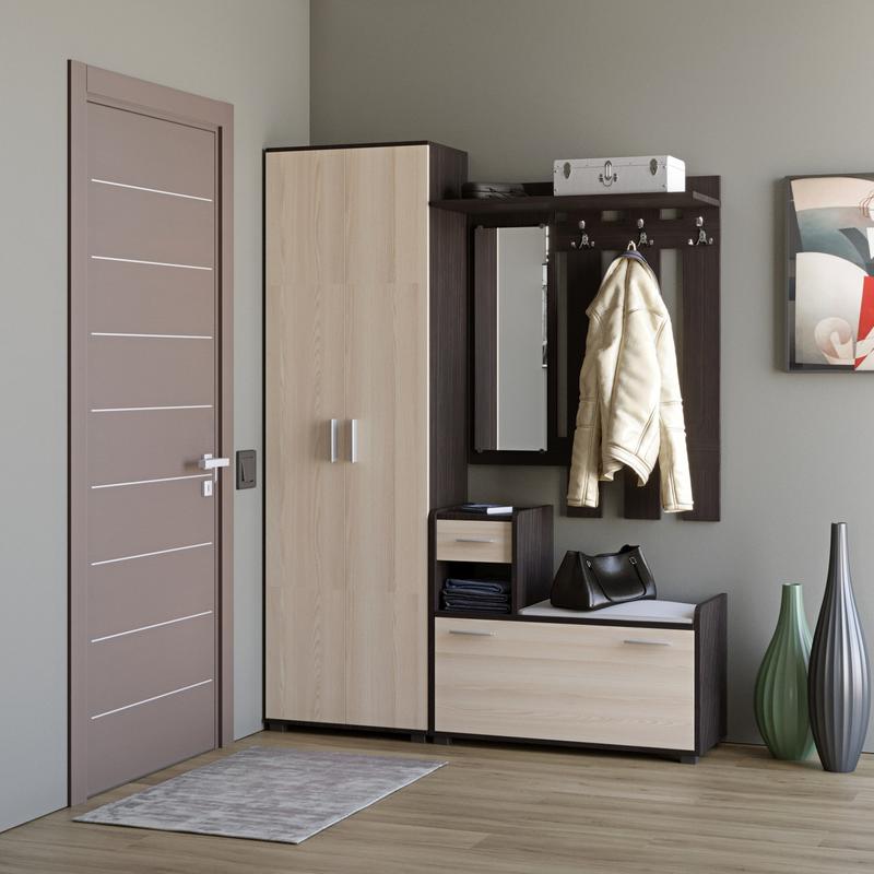 Передпокій еверест тандем з розпашною шафою шп-1 і тумбою (ліва) венге темний+дуб молочний...