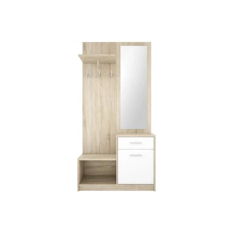 Прихожая с зеркалом Гербор Непо PPK Дуб сонома/Нимфея альба Гармоничное сочетание теплого стиля и функциональности представлено в создании прихожей из коллекции Непо от бренда Gerbor. Даже самые высокие стандарты качества обеспечиваются благодаря тщательному производству в Украине. Этот предмет мебели идеально сочетает в себе современный стиль и практическую необходимость хранения вещей. Она имеет один выдвижной ящик и одну дверцу, а также одну полку для обуви, предоставляя достаточно пространства для хранения. Компактные размеры позволяют вписаться в любое пространство без снижения функциональности. Характеристики: Длина - 90 см; Глубина - 31 см; Высота - 184 см. Прихожая Непо выполнена в уютном цвете дуба Сонома с добавлением светлых оттенков нимфеи Альба на фасаде. Материал корпуса и фасада - ДСП, который славится своей прочностью и долговечностью, сохраняя привлекательный внешний вид в течение длительного времени. Особенность данной модели - наличие зеркала, которое придает ей не только эстетическую привлекательность, но и практичность, позволяя сделать последнюю ретушь перед выходом из дома.