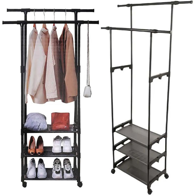 Двойная вешалка для одежды передвижная (164х98х58см), черный