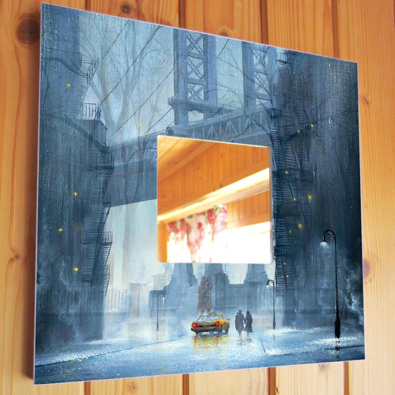 Декоративне дзеркало «дощовий нью-йорк. бруклінський міст» арт прикраса інтер'єру спальні,...