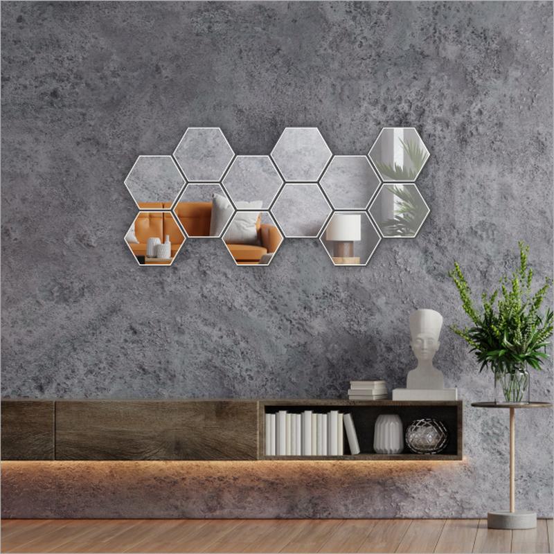 Небьющееся акриловое зеркало - самоклеящиеся на скотче Настенное зеркальное панно - прекрасный способ оживить интерьер и визуально расширить пространство в квартире. Панно состоит из набора отдельных деталей шестиугольной формы, изготовленных из зеркального самоклеющегося акрила толщиной 2 миллиметра. Для упрощения монтажа, в наборе есть деревянные распорки шириной 3, 5 и 7 мм, в количестве пяти штук каждой толщины, которые позволяют наклеить панно идеально ровно. Вы можете сложить из зеркальных деталей любую мозаику. Для крепления панно на стену не нужны никакие дополнительные крепежи. Просто снимите защитную пленку с клеевого слоя и наклейте на сухую, чистую и ровную поверхность. Выпускаются наборы со следующими размерами элементов. Чтобы выбрать нужный вам размер, нажмите на соответствующую ссылку. - 90 х 80 мм - 100 х 85 мм - 115 х 100 мм - 120 х 105 мм - 130 х 113 мм - 150 х 130 мм - 200 х 173 мм - 220 х 190 мм Количество элементов в наборах - 14, 16, 18 штук. Чем больший комплект - тем больший простор для творчества.