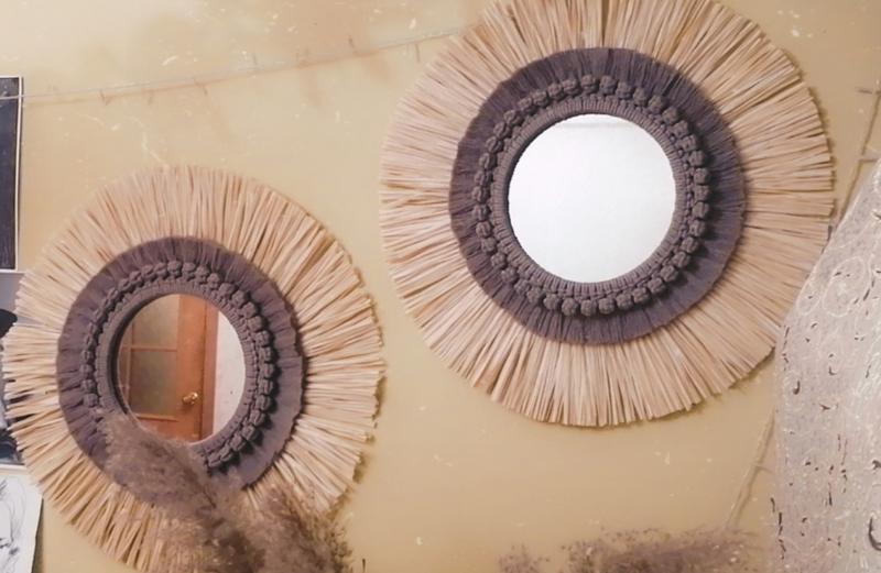 Красиве оригінальне дзеркало прикрасить ваш інтер'єр. Матеріал бавовна+рафія .Діаметр готового виробу 55см.