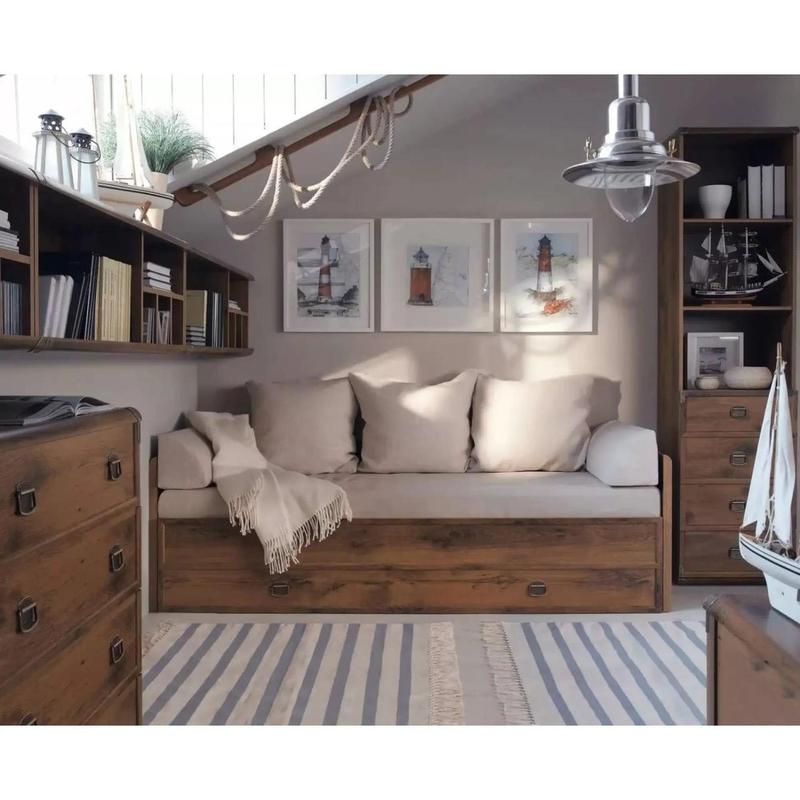 Комплект модульний в спальню ВМК (БРВ) Індіана N77807 Дуб шуттер Набір меблів у спальню Індіана N77807 від українського виробника ВМК (БРВ) стане чудовою прикрасою сучасного інтер'єру. Відрізняється високою якістю матеріалів та продуманим дизайном. Корпус та фасад виконані з міцного та екологічно чистого матеріалу: ДСП та МДФ. Кольорове рішення - дуб шуттер, створює затишне та тепле настрій у спальні. До комплекту входять: Ліжко трансформер з матрацом та подушками ВМК (БРВ) Індіана JLOZ80/160 79-154х202 см Дуб шутер (GRB-1566); Пенал відкритий з ящиками ВМК (БРВ) Індіана JREG4SO/50 Дуб шутер (GRB-1610); Полиця настінна ВМК (БРВ) Індіана JPOL/120 Дуб шутер (GRB-1600) - 2 шт.; Комод в спальню ВМК (БРВ) Індіана JKOM4S/80 Дуб шутер (GRB-1577) Є основа під матрац, що збільшує термін служби матрацу та звільняє від необхідності його додаткової придбання. Розмір спального місця складає 79х154х202 см, що достатньо для комфортного та повноцінного відпочинку. Всі елементи колекції Індіана виконані в єдиному стилі та чудово поєднуються між собою.