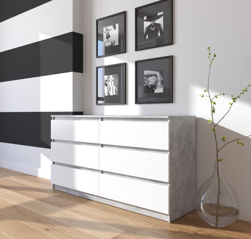 Комод на 6 шухляд R - 7 Собственное производство Материал: ламиновая ДСП, толщина 16 мм Размеры: Ширина: 1402 мм Высота: 755 мм Глубина: 400 мм Кольори: Белый Дуб сонома Бетон Венго темный Антрацит Бетон + белый Дуб сонома + белый Венго темный + белый Антрацит + белый Доставляется Новой Поштой по всей Украине в разобранном виде (это уменьшает риск повреждений и значительно снижает стоимость доставки) В комплекте есть вся необходимая фурнитура и пошаговая инструкция по сборке, все отверстия проскальзаны.