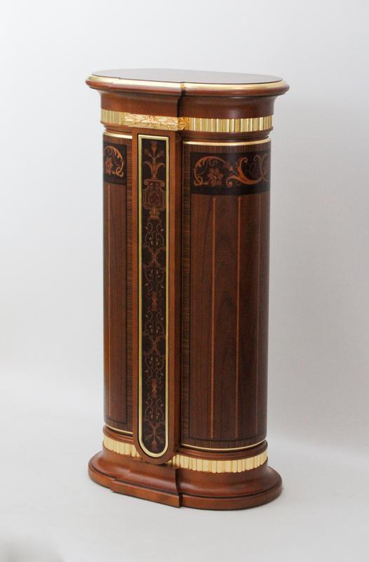 Цей елегантний підлоговий бар здатний перетворити вашу кімнату! Виріб виконаний в класичному стилі з натурального дерева. Сам бар має такі види декорування, як - поталь (імітація золота); - інтарсія (декорування натуральним шпоном); - симетричну різьблення. Бар виконаний в класичному стилі. Має механізм відкриття дверей на 180 градусів, що дозволяє розширити світловий отвір. Всередині є 2 скляні полички, які розташовані горизонтально паралельно один одному. Этот бар выглядит солидно не только за счёт потали, но и интарсии – это сложная техника, по которой вручную воссоздается узор из различных видов шпонов. Такой бар станет отличным дополнением для столовой комнаты или кабинета. А благодаря отличному качеству работы наших специалистов и материалов, этот бар прочный и износостойкий, в отличие от качества итальянской мебели. Бар не требует дополнительного или затруднительного ухода, достаточно будет протирать его сухой или влажной тряпкой по мере загрязнения, а стекло специальным моющим средством от разводов по мере загрязнения. Стекло – универсальный материал, с которого можно убрать абсолютно все загрязнения и который не так легко то и поцарапать. Поэтому вы не будете тратить много времени на его уборку. Характеристики: • Бренд «Лирона» • Бар выполнен из натурального дерева, что позволит ему служить для вас десятилетиями. • Бар эксцентрично декорирован, что не может не обратить взгляд вашего партнера на себя. • Изделие устойчивое и узкое, что позволит разместить его даже в маленьком пространстве. • Дверцы могут открываться на 180 градусов. • Имеет 3 отсека для хранения алкоголя. • Бар с легкостью впишется в классический выдержанный стиль. Мы работаем и создаем дизайн и качественную мебель с 1992 года, пронеся через годы весь накопленный опыт и нарастающий с каждым днём профессионализм. К 2021 году мы имеем огромнейшее портфолио сделанных нами работ, которые вышли из-под рук нашей компании. Благодаря нашей кропотливости, точности и любви к этому делу, нам удалось сделать множество огромных проектов в Украине, Америке, Казахстане и других странах, Мариинский дворец (кабинет президента, двери в помещениях официальных приемах и т.д.), и многое другое. Практически за 30 лет нашей работы мы смогли сделать обилие дизайн-проектов – от простых минималистических до разнообразной классики. Именно, поэтому каждый наш сотрудник смог стать первоклассным экспертом в своем деле. Все эти годы мы трудились над высококачественным уровнем наших изделий, чтобы они были ещё более совершенными и изящными.