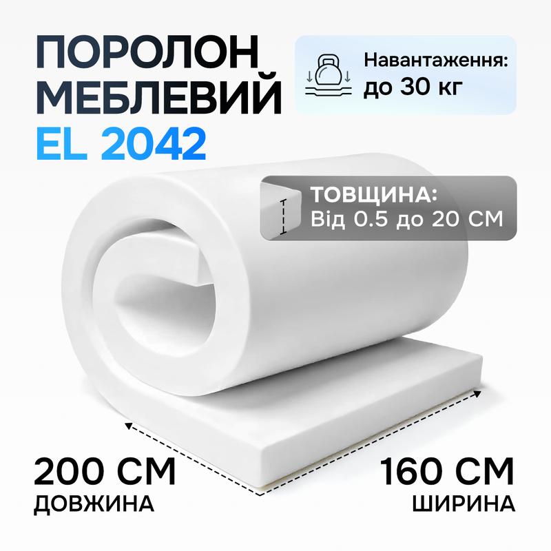 Поролон меблевий листовий el 20–42 — лист ппу 1600×2000 мм середньої щільності для диванів...