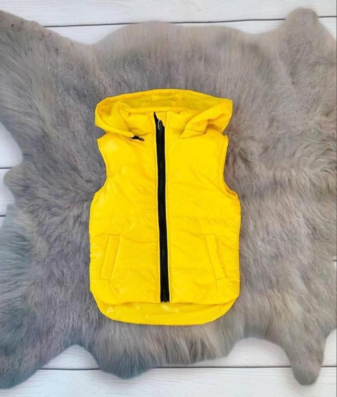 ЖИЛЕТКА жовтого кольору з чорною блискавкою з світловідбиваючим елементом та відстібним капюшоном. Комфорт для Вашої дитини з перших років життя. Жилетка подовжена і це оберігає спинку та поперек Вашої дитини від поривів вітру. Зверху є захист від можливого затискання підборіддя. Ззаду на жилетці знаходиться світловідбиваючий елемент. З боків є кишені. Склад: - Верх - м'яка водовідштовхувальна плащова тканина "Moncler" високої якості. - Усередині - підкладкова тканина. Утеплювач: силікон 150. Прання бажано ручне та машинне (у режимі делікатне) при 30° С використовуючи засоби для прання дитячих речей. Країна виробник: Україна.