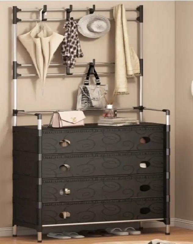 Залізна вішалка для одягу + підставка для взуття, 2 в одному, 4 полиці чорна та біла