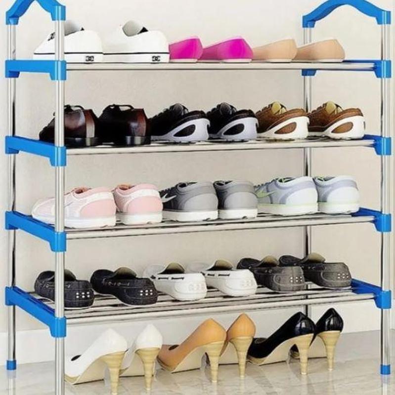 Попри порівняно невелику вагу, полиця може витримувати велике навантаження. Якість. Компоненти, з яких складається органайзер для взуття, ретельно відібрані, щоб забезпечити найкраще співвідношення ціни та якості. Усі частини та компоненти входять до будь-якого паковання. Розмір — у проміжках між ярусами можна розмістити взуття різних типів. Його також можна регулювати, просто зніміть один або два яруси, щоб прибрати черевики або інші великі аксесуари. Портативність — він дуже легкий за вагою та порівняно невеликому розміру, тому його можна використовувати в різних частинах вашого будинку. Коридор, спальня, гараж тощо.Простота — полиця для взуття постачається з ретельно структурованою інструкцією з експлуатації. Для його збирання не потрібно ні досвіду, ні особливих інструментів. Будь ласка, не застосовуйте силу під час прибирання в разі гострих країв. Характеристики: Тип: полиця для взуття; Тип: складана; Матеріал каркаса: метал; Ширина: 56 см; Висота: 82 см; Глибина: 26 см; Розрахована на 12 пар взуття; Кількість ярусів: 4; Легко складається й розбиратися; Труби металеві, пластикові роз'єми та компоненти міцно складені. Комплектація: Полиця для взуття — 1 шт.; Паковання: заводська коробка.