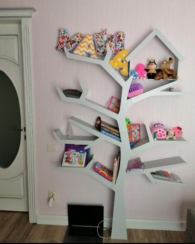 полку у вигляді дерева, під замовлення, ручної роботи, на строк до 30 днів, передоплата 50%, залишок перед відправкою новою поштою, мдф, акрилова фарба. 1700х1200х170. Виріб зроблено мною, фото з інтер'єра люб'язно надано замовником. Додаткові характеристики: Призначення: Для іграшок Матеріал: Деревина Товар виготовляється на замовлення