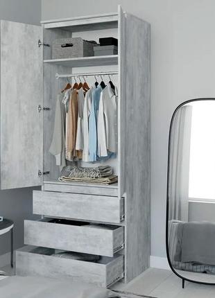 Корпус - ДСП ламінована. Товщина матеріалу – 16 мм. Розмір – ш.-800; в.-2100; г.-500 мм. Вага – 73 кг. В розібраному вигляді, в заводській упаковці. В комплект входить вся необхідна фурнітура та детальна інструкція. Всі технологічні отвори просвердлені, тому процес збирання виробу не складе труднощів. Колір корпусу – Білий, Білий - Сонома, Білий - Антрацит, Бетон, Бетон - Білий, Венге Темний, Венге Темний - Білий, Дуб Аппалачі, Дуб Сонома, Дуб Сонома - Білий, Антрацит, Антрацит - Білий, Антрацит - Венге, Антрацит - Сонома. (При замовленні вказуйте, будь ласка, вибраний колір.) Відправка Новою поштою. Також в наявності більше 200 найменувань різноманітних меблів: для кухні, дитячої кімнати, спальні, вітальні, передпокою.