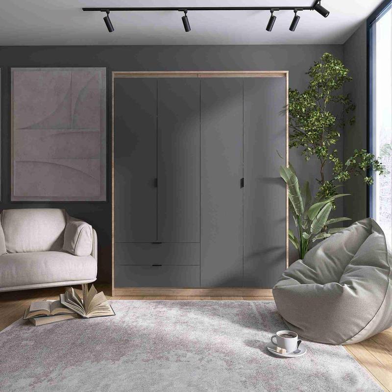 Шафа з полицями праворуч 1600 сіті, дуб сонома, графіт меблі для дому