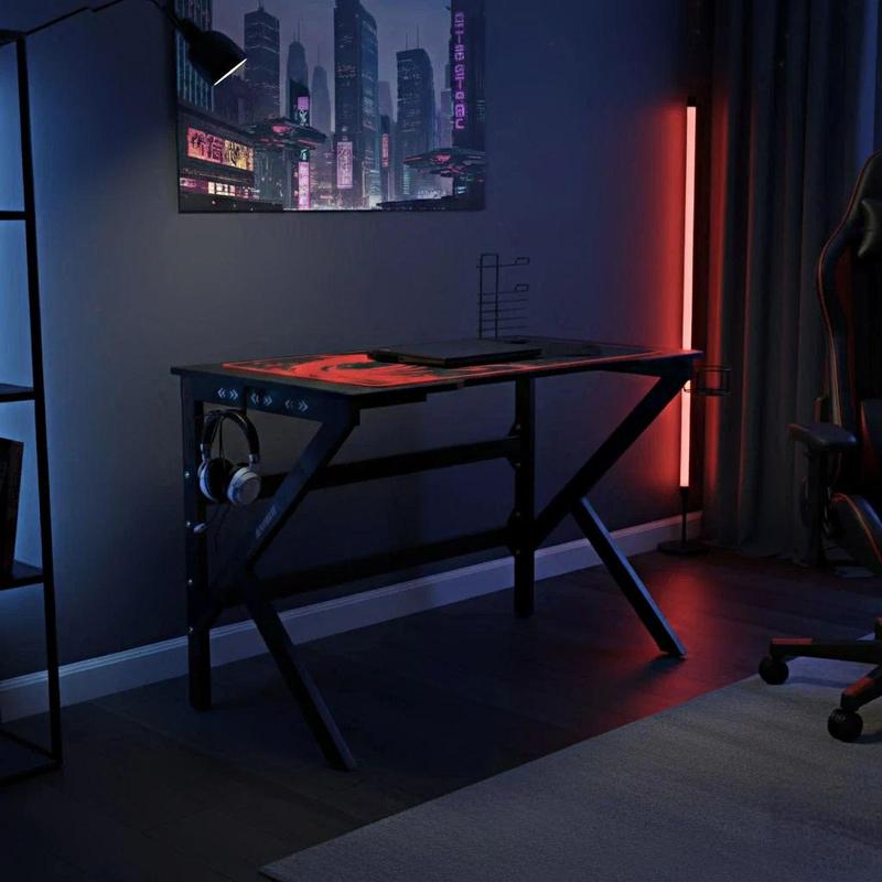 Ігровий комп’ютерний стіл з rgb led-підсвічуванням тримачем для навушників та чашки чорний...