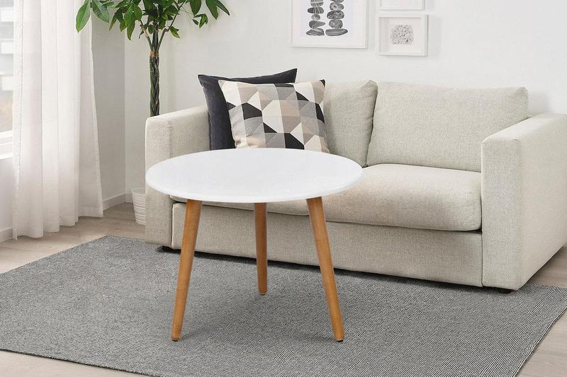 Розмір: D = 610 мм; H = 450 мм. Колір: ясен/білий. Матеріал: Каркас: масив клена; столешня: МДФ фарбований;