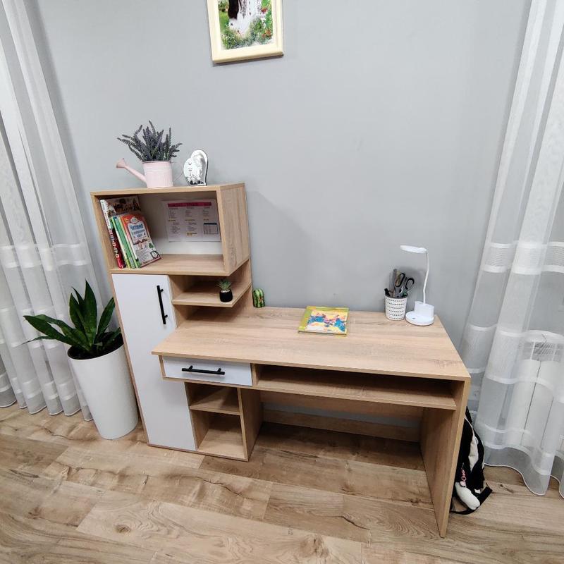 B - 31 Комп'ютерий стіл Власне виробництво Перше фото це фото-відгук щоб ви розуміли як виглядає вживу Матеріал: ламінова ДСП, товщина 16 мм Розмір: Ширина: 1500 мм Висота: 1390 мм Глибина: 500 мм Кольори: Білий Дуб сонома Бетон Венге темний Антрацит Чорний Доставляємо Новою Поштою по всій Україні у розібраному вигляді ( це зменшує ризик пошкоджень та значно знижує вартість доставки) В комплекті є вся необхідна фурнітура та покрокова інструкція по збірці, всі отвори просверлені.