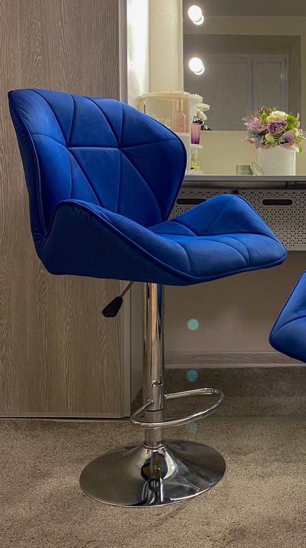 Стілець барний з регулюванням висоти хокер hrove form hr212w синій велюр хромована основа